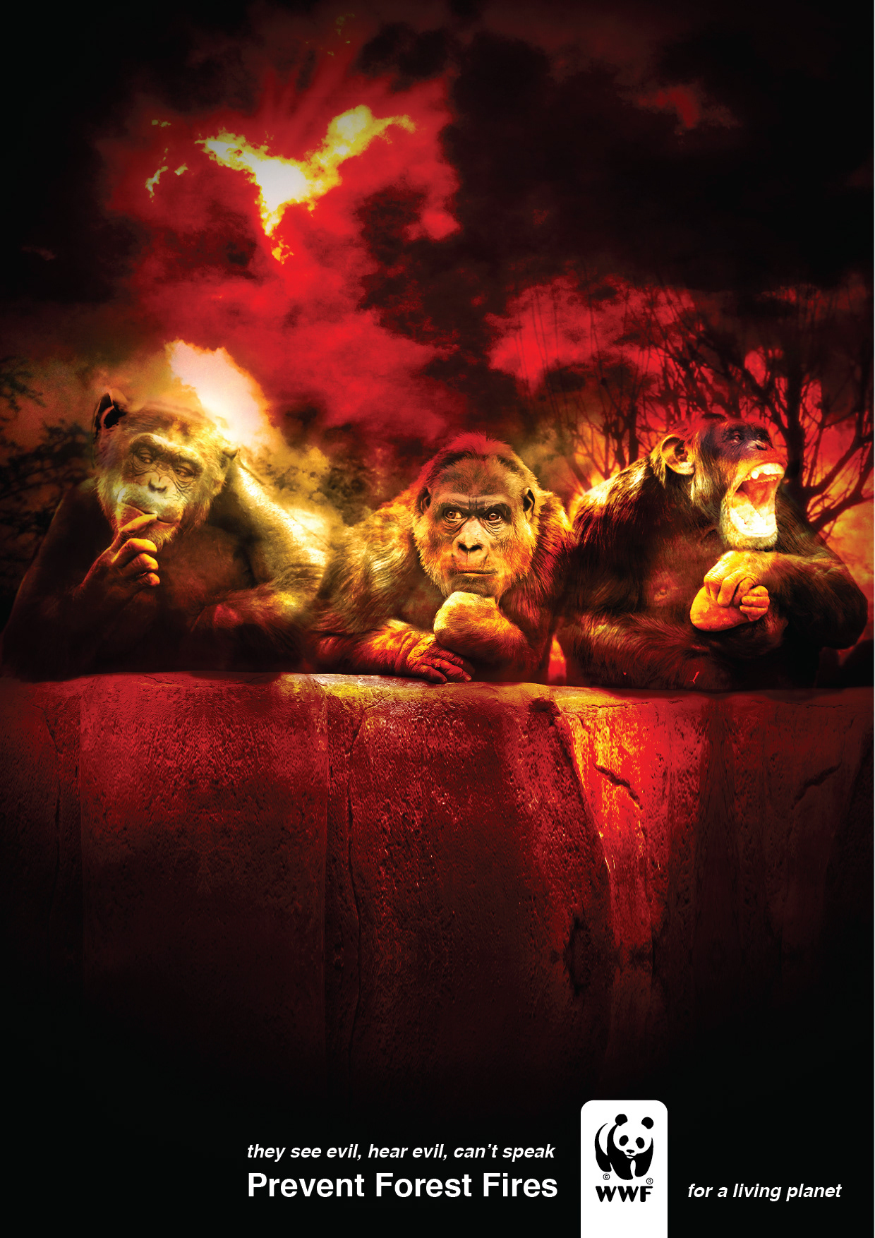 WWF "Wise Nature" Concept (2014) They see evil, hear evil, and they can't speak! PREVENT FOREST FIRES